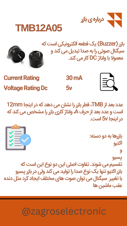 این بازر با ترکیب اندازه کوچک، نصب آسان و عملکرد صوتی قدرتمند، گزینهای ایدهآل برای توسعهدهندگان، مهندسان و علاقهمندان به الکترونیک است. برخلاف بازرهای پیزوالکتریک، TMB12A05 از یک کویل الکترومغناطیسی برای تولید صدا استفاده میکند که با سیگنالهای موج مربعی به بهترین شکل عمل میکند. این ویژگی آن را به گزینهای مناسب برای اتصال مستقیم به میکروکنترلرهایی مانند آردوینو، رزبریپای یا STM32 تبدیل کرده است.