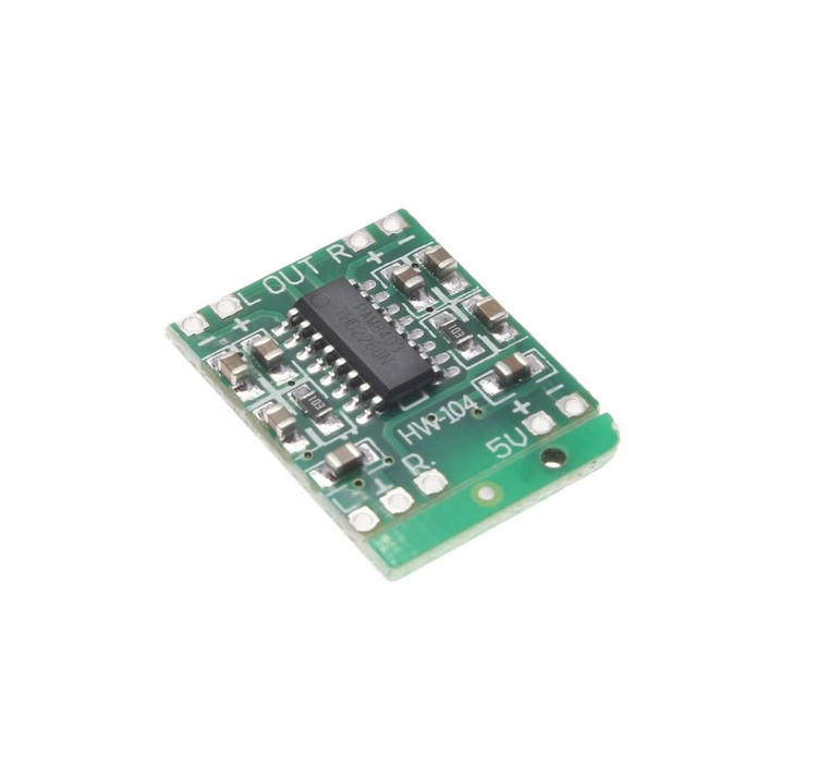 توضیحات: آمپلی فایر ساده و کوچک استریو با توان پایین دارای2 کانال با توان خروجی 3W+3W و ولتاژ کاری 3.6 ولت تا 5.5 ولت