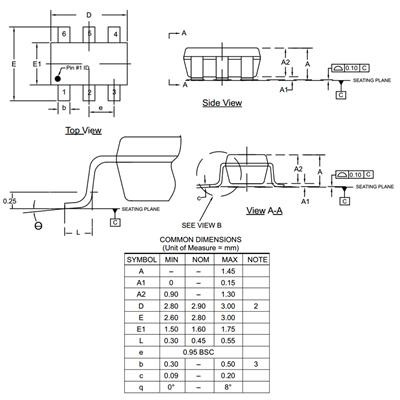 بستهبندی کمحجم: بسته SOT-23-6 با ابعاد کوچک و مناسب برای نصب سطحی (SMD/SMT).